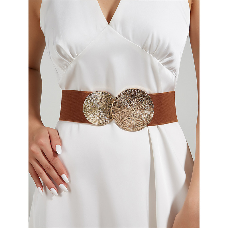 Women's Alloy Metal Buckle Stretch Belt with Polyester Elastic Band, Available in Multiple Colors, Perfect for Valentine's Day Outfits