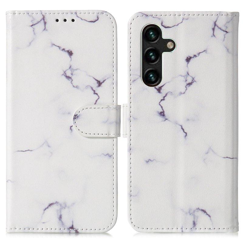 Samsung Galaxy A35 5G Fodral Äkta Läder Mönstertryckt - Vit Marmor