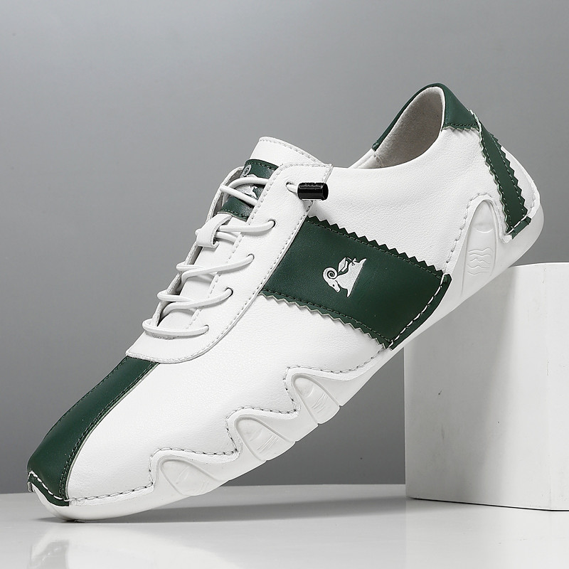 Men's Green Casual Lace-Up Faux Leather Sneakers with Hand-Sewn Sole – Lightweight and Comfortable Walking Shoes for Everyday Wear