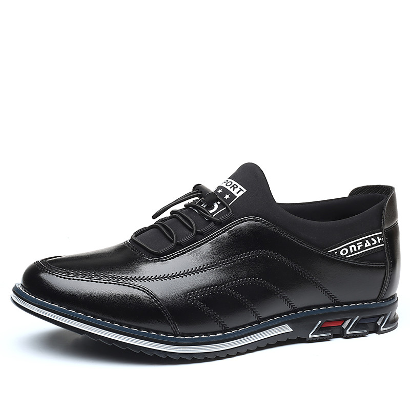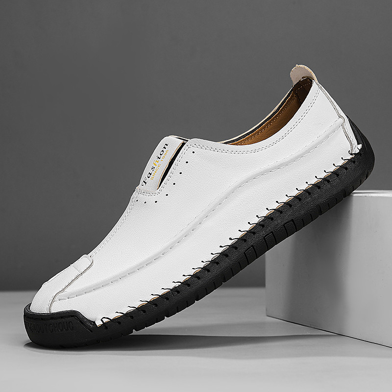 Men's Black Leather Slip-On Sneakers with Cushioned White Sole and Minimalist Design, Casual Loafers for Work, Travel and Everyday Wear