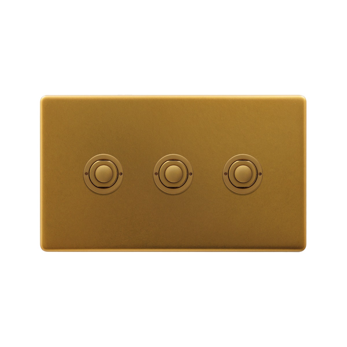 Soho Lighting Antique Gold 3 Gang 6A 2 Way Retractive Push Button Switch