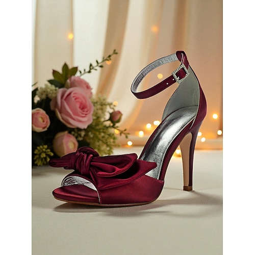 sandali da donna con tacco alto e fiocco in raso rosso - eleganti tacchi a spillo con cinturino alla caviglia e punta aperta per cocktail party ed eventi serali