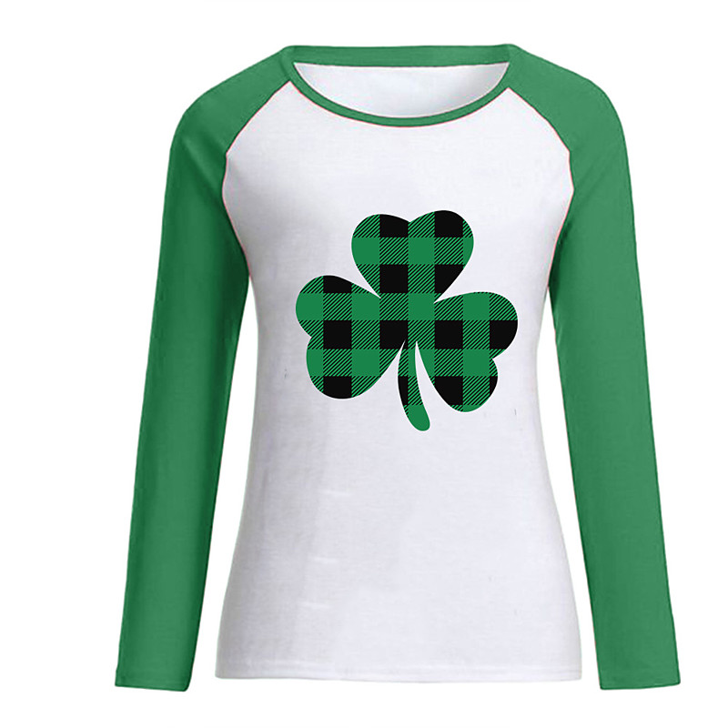 St. Paddy's Day St. Patrick's Day Women's T Shirt Shamrock Fashion Long Sleeve Round Neck Regular Tops Casual St.Patrick's Day Print Grass Green White Light Green Dark Green Green Spring Fall