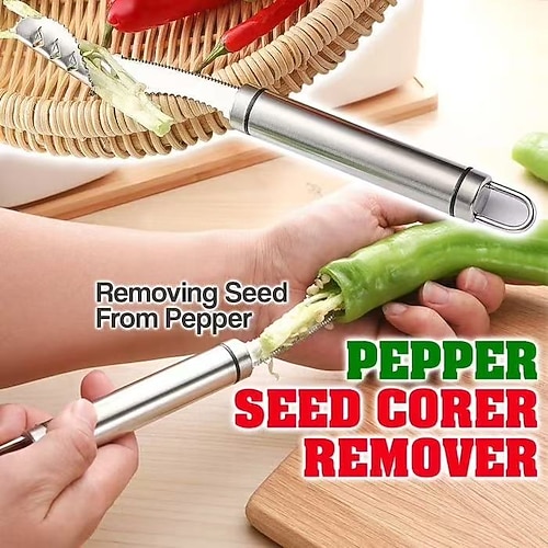 2 pezzi di estrattore per semi di peperone, strumento in acciaio inossidabile per l'estrazione del torsolo di peperoncino per peperoni, melone amaro e peperoni verdi, facile da usare come utensile da