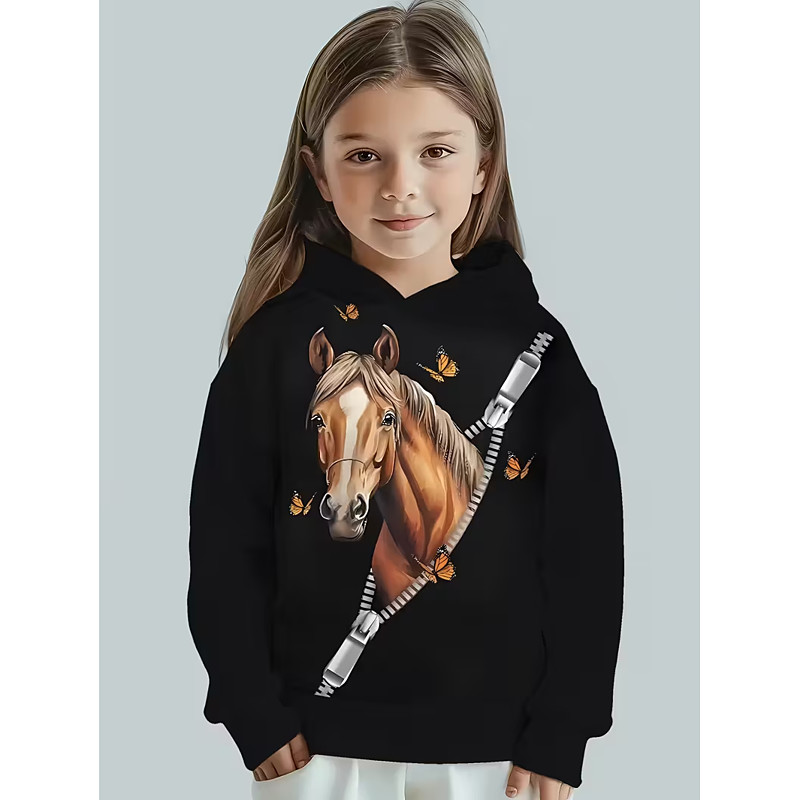 Girls' 3D Horse Hoodie Long Sleeve 3D Print Fall Winter Active Kids 3-12 Years Outdoor Daily