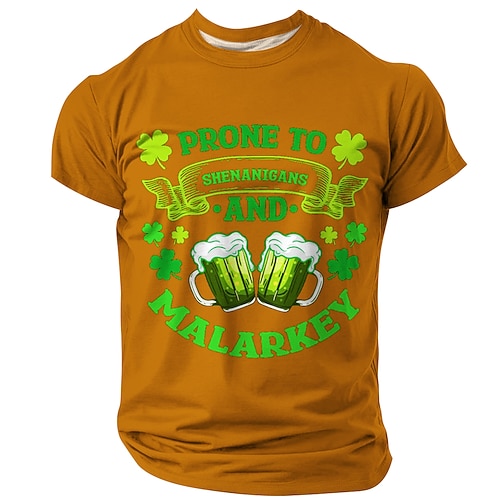 San Patrizio Per uomo Trifoglio Irlandese fortunato Maglietta Manica Corta maglietta Stampa 3D Girocollo Camicia Designer Casual Feste Ferie Club Nero Blu Arancione Estate Primavera Abbigliamento S M