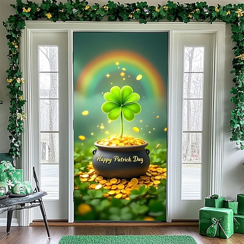 Festa di San Patrizio Poster Copertura della porta Banner per esterni Cappello verde Trifoglio Carino 3D Fantasia Da serata Dormitorio Stanza per adolescenti Dormitorio universitario Ragazzi Man Cave