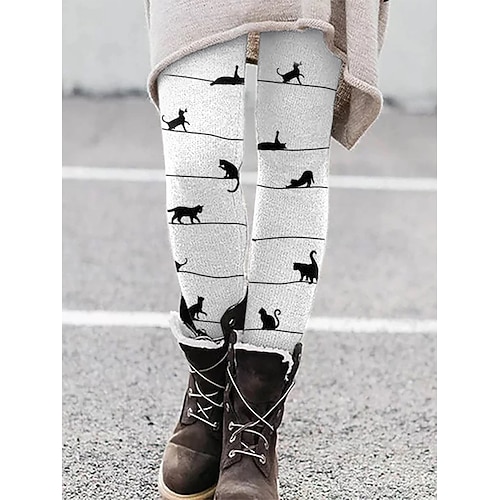 Per donna Leggings Vacanza Vintage Stile Etnico Lunghezza alla caviglia Vita Alta Grafico Animale Gatto Stampa 3D Asciugatura Rapida Traspirabilità Morbido Elasticizzato All'aperto Casa Casual Nero