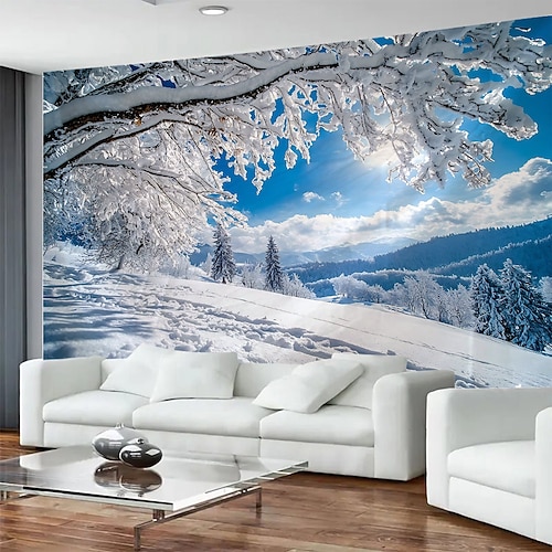 arazzo con motivo invernale innevato per esterni, grande decorazione murale da appendere alla parete, tessuto per sfondo fotografico, arredamento per la casa per camera da letto, soggiorno o ufficio