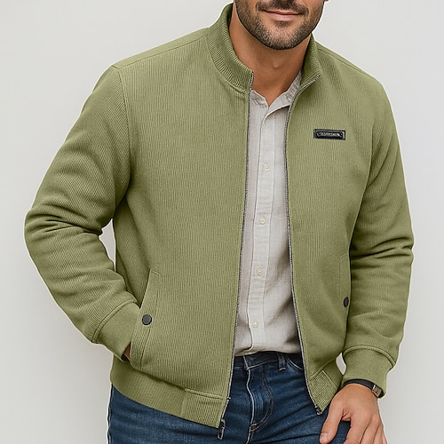 Per uomo Giacca Leggera Formale Casa Comodo Tasca Minimalista Primavera Autunno Tinta unica Neutro Sport e Outdoor Collo alla coreana Regolare Nero Verde Cachi Grigio Giacca