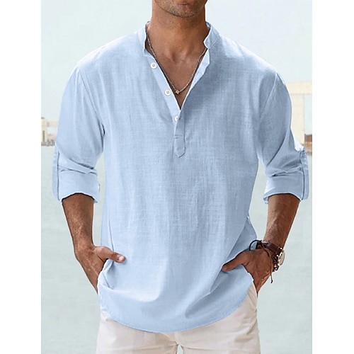 Per uomo Camicia Camicia di lino Camicia Estiva Camicia da Spiaggia Semplice Vacanza Camicia hawaiana Blu Nero Bianco Rosa Manica Lunga Collo alla coreana Primavera Estate Abbigliamento Base