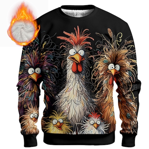 Per uomo Gallo Scontroso Pile Felpa Quotidiano Casual 3D Girocollo Casa Feste Regalo Abbigliamento casual alla moda Blu chiaro azzurro cielo Nero Bianco Rosso Stampa 3D Autunno Inverno progettista S