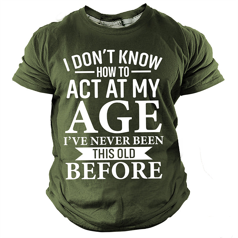 Men's Funny Graphic Short Sleeve T-Shirt - 'I Don't Know How To Act At My Age' Humor Tee