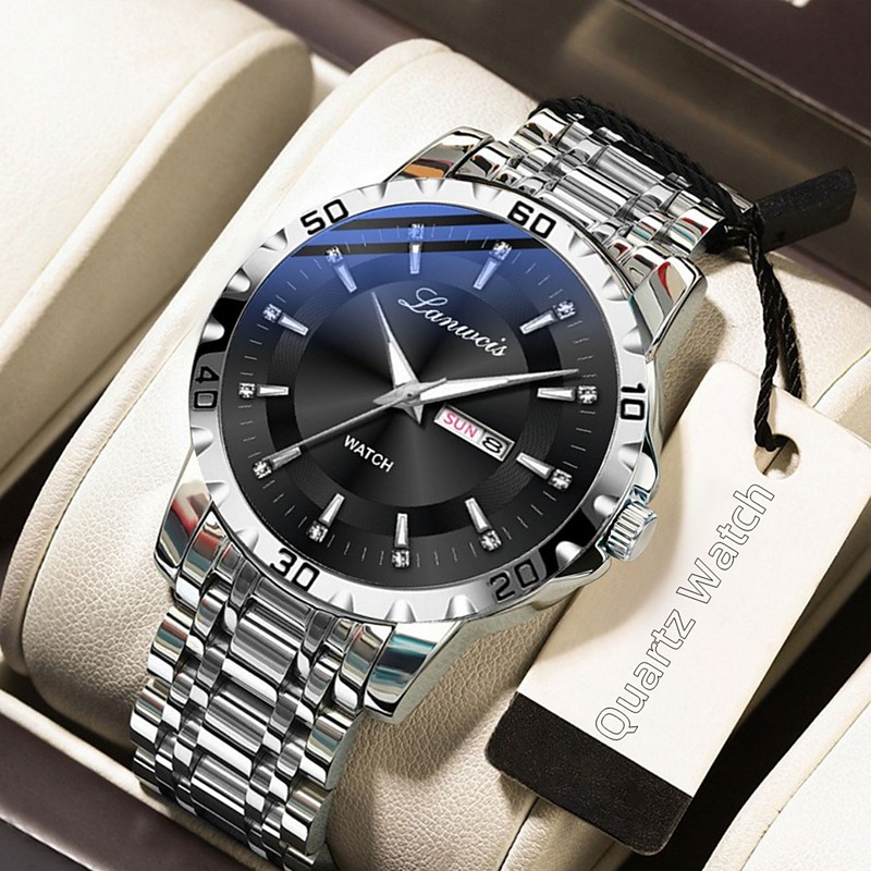 1 New Fashion Trend Men'S Business Quartz Watch Calendar Week Display Life Travel Luminous Leisure Sports Men'S Wristwatch Gift Gift Ideal Choice