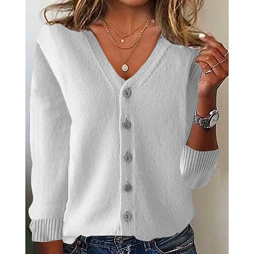 Per donna Felpa Cardigan Moda Streetwear Quotidiano Tinta unica A Coste Scollo a V Lavorato a maglia Manica Lunga Top Regolari Maglia Ferie Uscire Weekend Nero Bianco Autunno Inverno