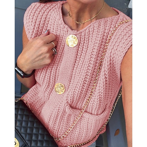 Per donna Felpa Gilet Cardigan Streetwear Casual Tinta unica Treccia Scollo a V Bottoni Lavorato a maglia Senza Maniche Top corti Maglia Quotidiano Uscire Weekend Nero Bianco Autunno Inverno
