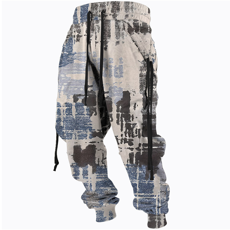 Men's Graphic Sweatpants Joggers Pants Trousers Mid Waist Drawstring Elastic Waist Vintage Casual Outdoor Street Dailywear Pocket Spring Fall Winter 3D Print Light Gray Blue Beige