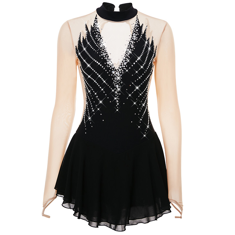 Figure Skating Dress Women's Girls' Ice Skating Dress Black Patchwork Open Back Mesh Spandex High Elasticity Training Practice Professional Skating Wear Classic Crystal / Rhinestone Long Sleeve Ice