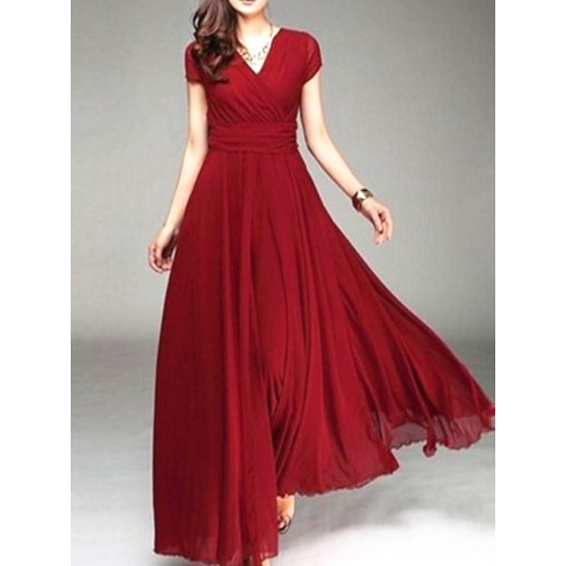 Women's Long Dress Maxi Dress Party Dress Casual Dress Swing Dress Modern Elegant Dress Daily Wedding Guest Date Slim Pure Color Short Sleeve V Neck Blue Black White Yellow Summer Spring