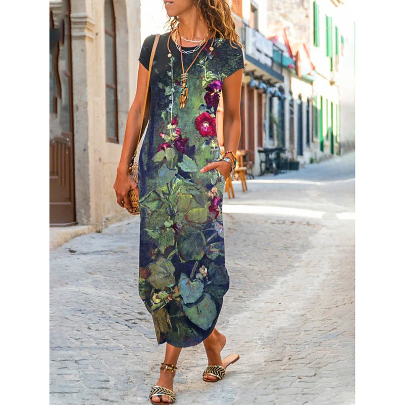 Women's Maxi Dress Sheath Dress T Shirt Dress Tee Dress Casual Boho Wedding Guest Daily Date Floral Graphic Long Sleeve Crew Neck Blue Green Gray Spring Fall Winter Autumn