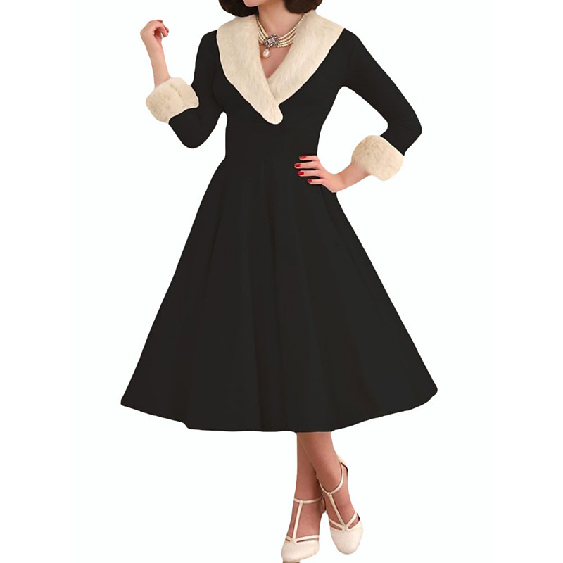 Women's Midi Dress A Line Dress Elegant Vacation Casual Work Street Date Regular Fit Solid Color Long Sleeve V Neck Blue Black White Red Spring Fall Winter