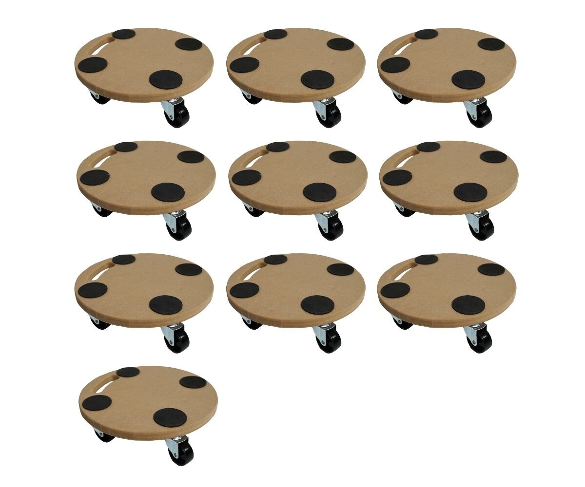 PROREGAL MegaDeal 10x Profi Transportroller mit 4 Rollen | Rund | HxBxT 11x30x30 cm | Traglast 100kg | MDF Holzplatte | Braun | Möbelroller