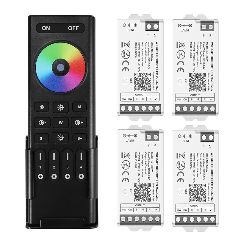 WiFi Remote Controller Kit for RGB CCT RGBW Dimming LED Strip Lights 4-Zone 2.4G Wireless Control DC12-24V 5-in-1 LED Controller Compatible with Alexa Google Home Smart Life Tuya APP