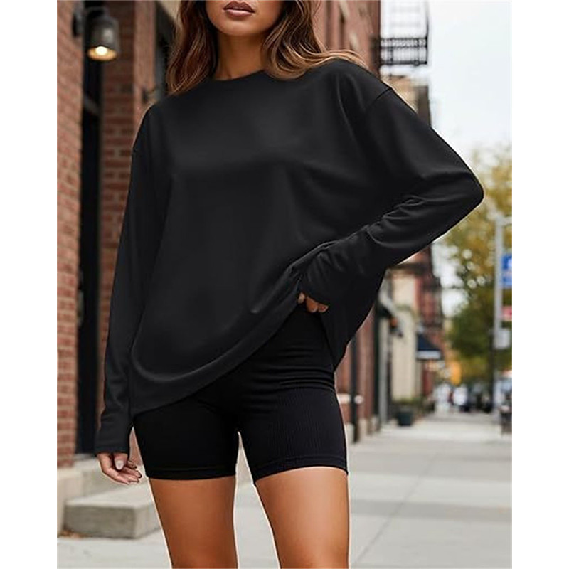 Women's Pullover Plain Elegant Warm Fashion Long Sleeve Round Neck Regular Tops Work Street Casual Patchwork Black Red Green Khaki Light Grey Fall Winter
