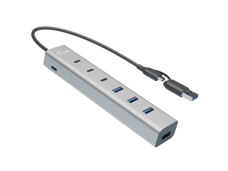i-tec CAHUBMETAL7, USB 3.2 Gen 1 (3.1 Gen 1) Type-A + Type-C, USB 3.2 Gen 1 (3.1 Gen 1) Type-A, USB 3.2 Gen 1 (3.1 Gen 1) Type-C, 5 Mbit/s, harmaa, 0,3 m, 15 W