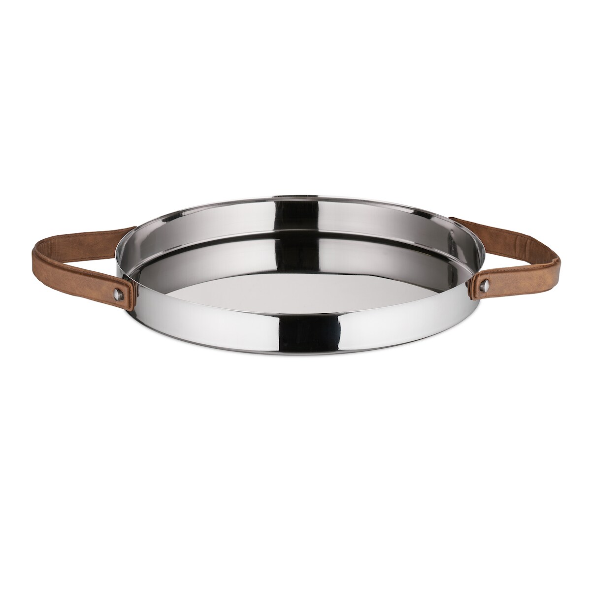Relaxdays Serviertablett, rundes Design, mit Rand & Griffen, Frühstück im Bett, Edelstahl, Ø 35 cm, Dekotablett, silber