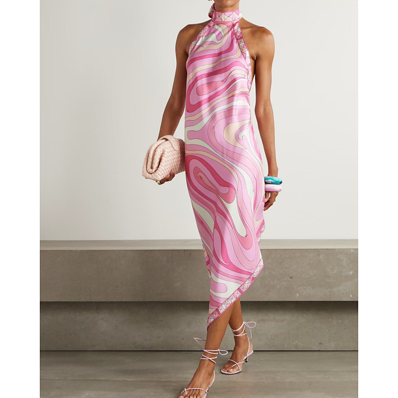 Women's Midi Dress Satin Dress Sundress Summer Dress Boho Dress Fashion Modern Daily Vacation Going out Regular Fit Graphic Sun Sleeveless Halter Neck Black Pink Summer Spring