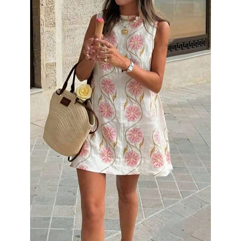 Women's Mini Dress Sundress Vacation Casual Boho Outdoor Going out Loose Fit Floral Sleeveless Crewneck Yellow Pink Green Summer Spring