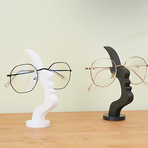 Supporto porta occhiali a forma di viso da 2 pezzi, organizer per occhiali nero minimalista con design artistico curvo, contenitore sicuro per scrivania o comodino, espositore decorativo, regalo di