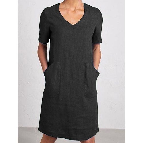 Per donna Mini Abito Abiti ispirati al lino Abito in cotone e lino Moda Essenziale Moderno All'aperto Quotidiano Ferie Vestibilità regolare Semplice Manica Corta Girocollo Blu Verde Rosso rosa Grigio