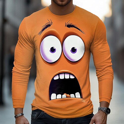 Herren 3D Lustige Emotes T Shirt Langarm T-Shirt 3D-Druck Rundhalsausschnitt Hemd Mode Übertrieben Straße Täglich Schwarz Blau Orange Sommer Frühling Herbst Bekleidung S M L XL XXL XXXL