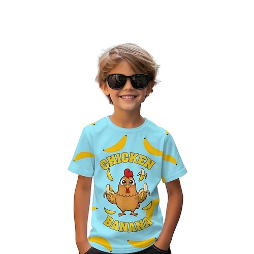 Jungen 3D Hähnchen und Banane Grafik T-Shirt Kurzarm 3D-Druck Sommer Frühling Sport Mode Streetwear Kinder 4-12 Jahre Rundhalsausschnitt Outdoor Lässig Täglich Normale Passform