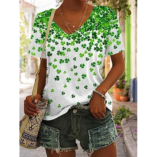 San Patrizio Per donna Maglietta Piante Casual Manica Corta Scollo a V Top Regolari Quotidiano Stampato Nero Bianco Verde Estate