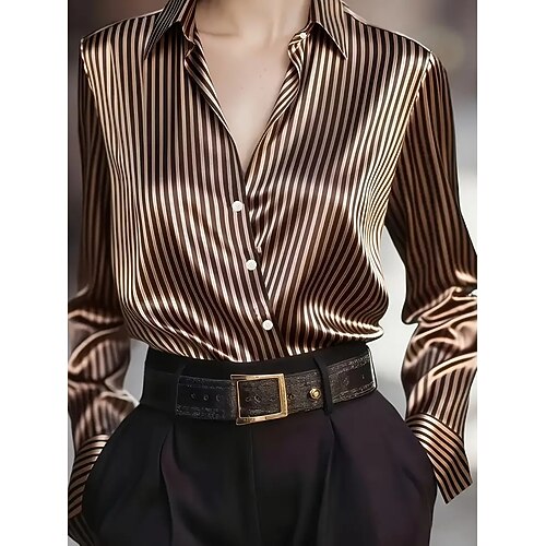 Per donna Blusa Semplice Quotidiano Retrò Vintage Colletto a Camicia Top Regolari Quotidiano Patchwork Bottoni Nero Marrone Verde Albicocca Autunno