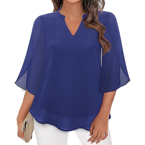 Per donna Blusa Top in chiffon Semplice Elegante Casual Mezza Manica Scollo a V Top Regolari Quotidiano Ferie Uscire Patchwork Nero Rosa Vino Rosso Blu Reale Estate Primavera Autunno