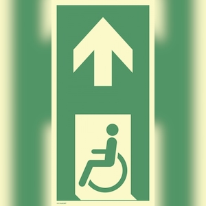 Schild Notausgang f. gehbeeintr. Pers. links Pfeil oben, Kunststoff, nachl., 200x400 mm