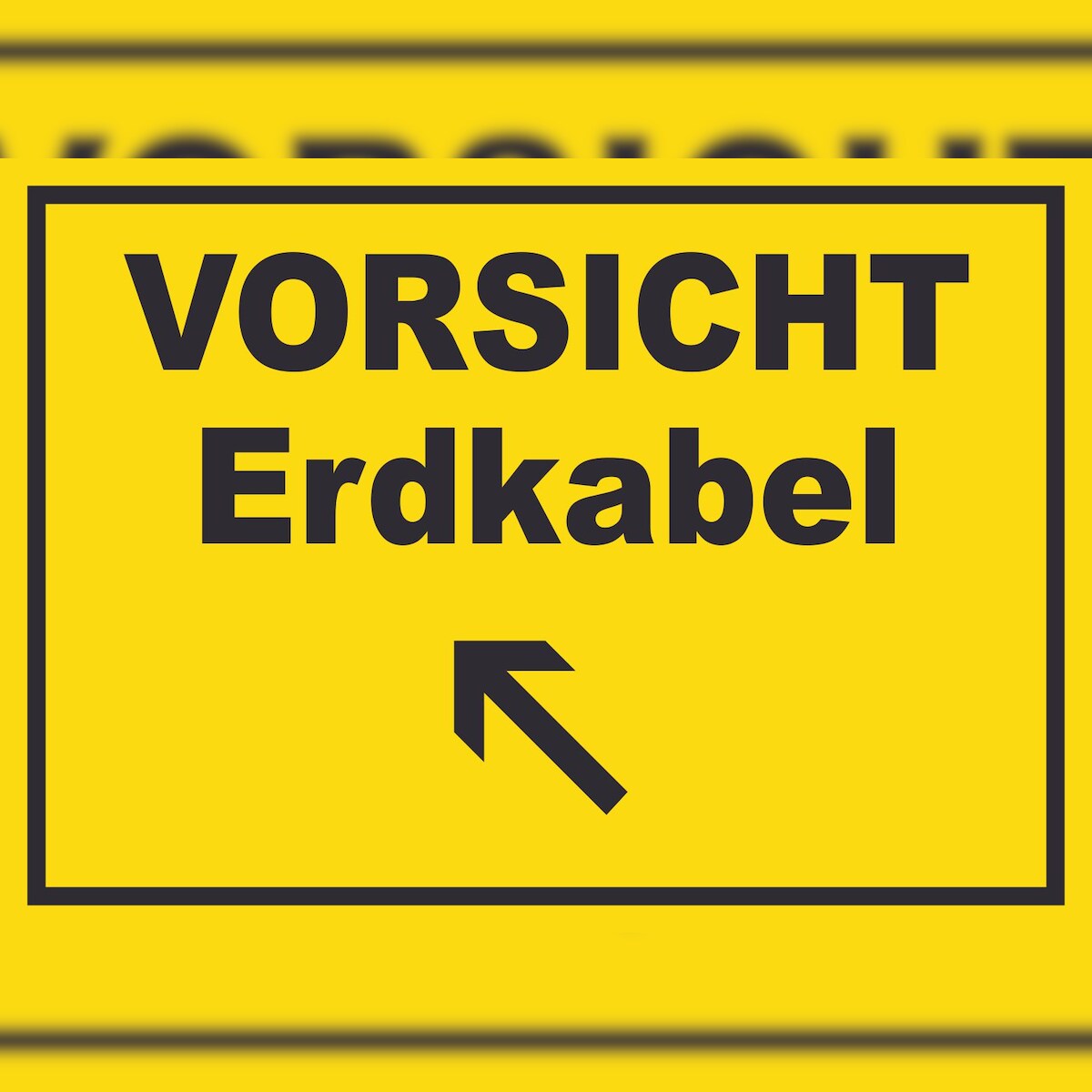 HB-Druck Vorsicht Erdkabel mit Richtungspfeil links oben Schild A6 (105x148mm)