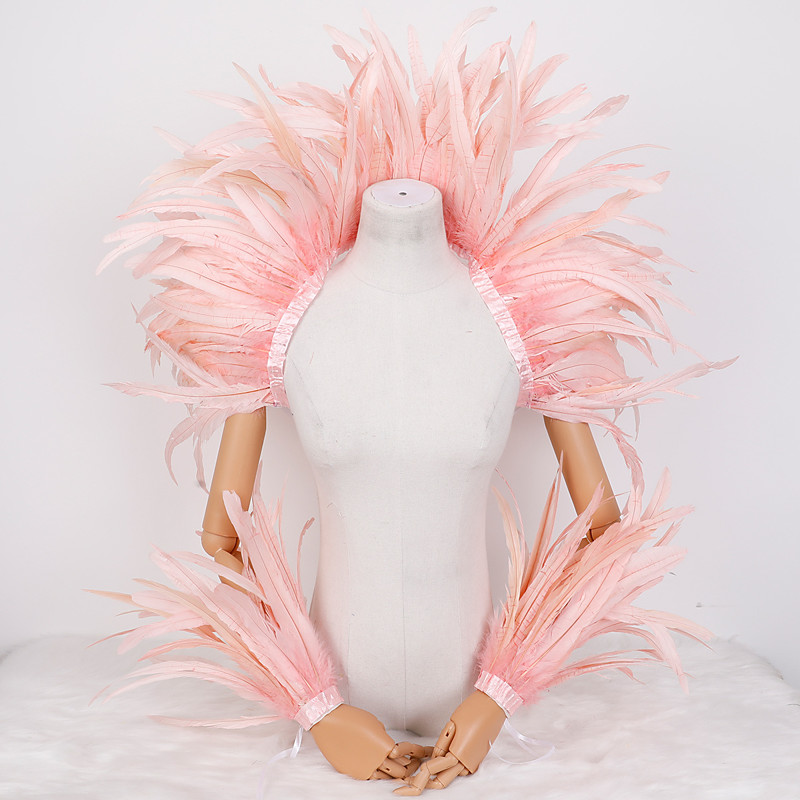 Rio Carnival Samba Accessories Carnival Red and Yellow Feather Costume Set Shoulder Cape Arm Cuffs for Mardi Gras, Dance Party Wear Brazil Festival Performance Costume