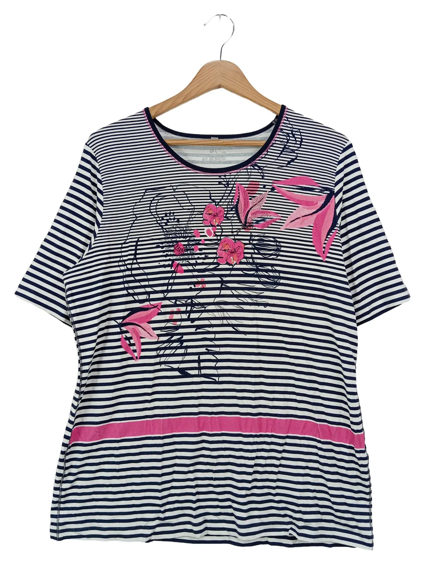 RABE T-Shirt 44 XL Blau Weiß Pink Gestreift Blumen