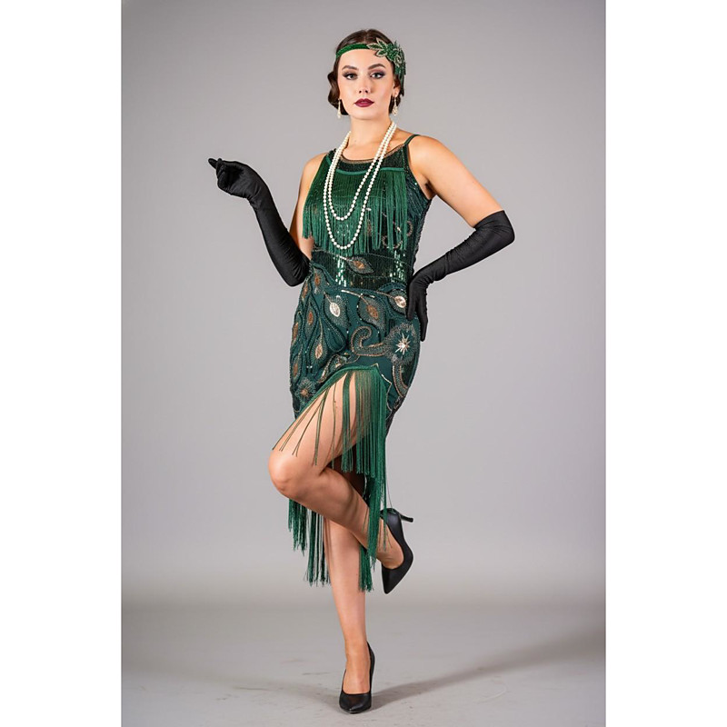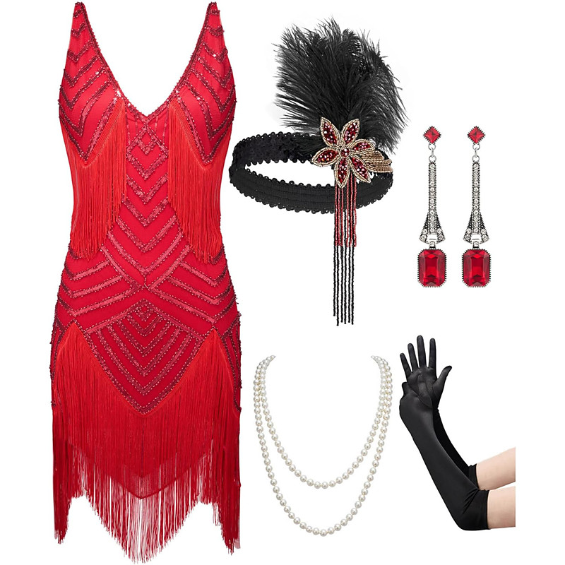 Set Roaring 20s 1920s Cocktail Dress Mini Flapper Dress Dress Outfits with Accessories Sleeveless The Great Gatsby Charleston Sequins Tassel Fringe Feather Deep V Fancy Dress Women's Carnival New