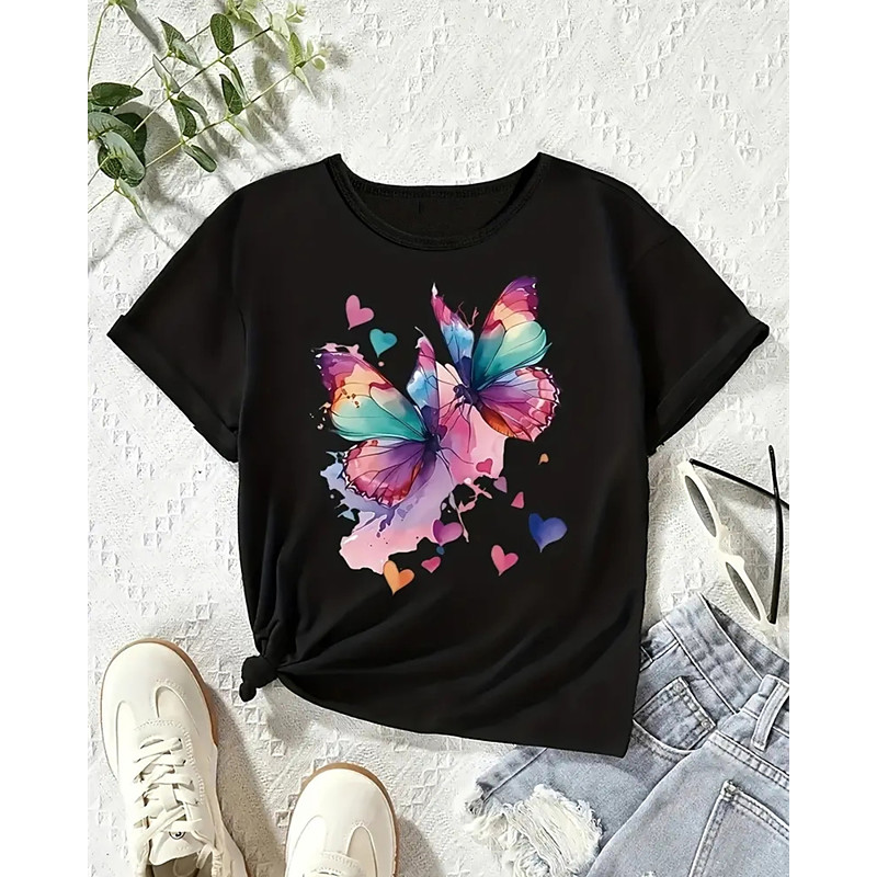 Girls' 3D Butterfly T shirt Tee Short Sleeve Summer Spring Fashion Basic Kids 4-12 Years Crew Neck Outdoor Casual Daily Regular Fit