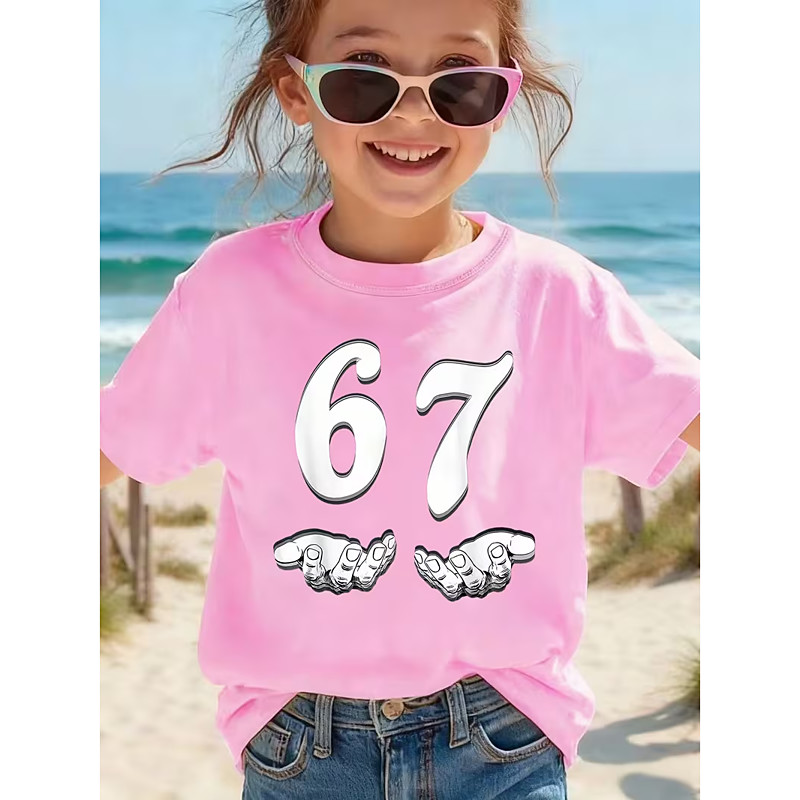 Girls' 3D Graphic Funny Slang 67 T shirt Tee Short Sleeve 3D Print Summer Spring Sports Fashion Streetwear Kids 4-12 Years Crew Neck Outdoor Casual Daily Regular Fit