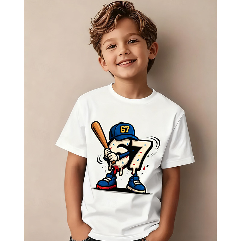 Cotton Kids Boys' Black Graphic Funny Slang 67 T shirt Blouse Crew Neck Short Sleeve Outdoor Dailywear Fashion Streetwear Designer Printing Summer