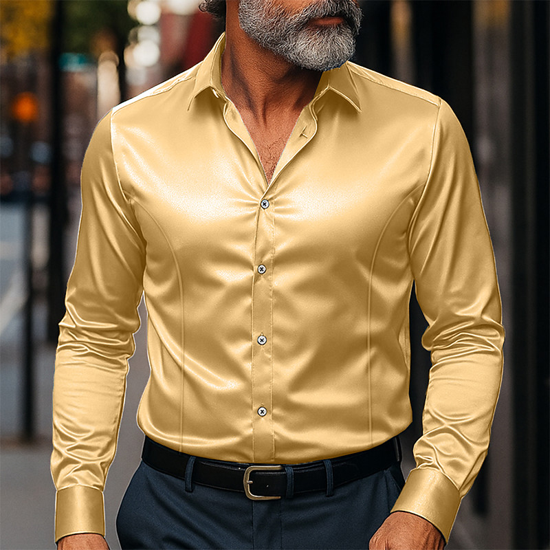 Men's Shirt Silk Like Satin Shirt Dress Shirt Casual Shirt Button Up Shirt Plain Formal Wedding Black White Yellow Red Long Sleeve Lapel Spring Fall All Seasons Clothing Apparel