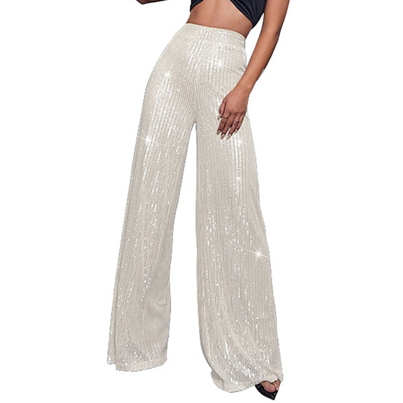 Women's Wide Leg Pants Trousers Sparkly Pants Elegant Fashion Sparkle Full Length High Waist Plain Sequins Comfy Micro-elastic Party Street Party Evening claret M beige Pink gold Black Summer Spring