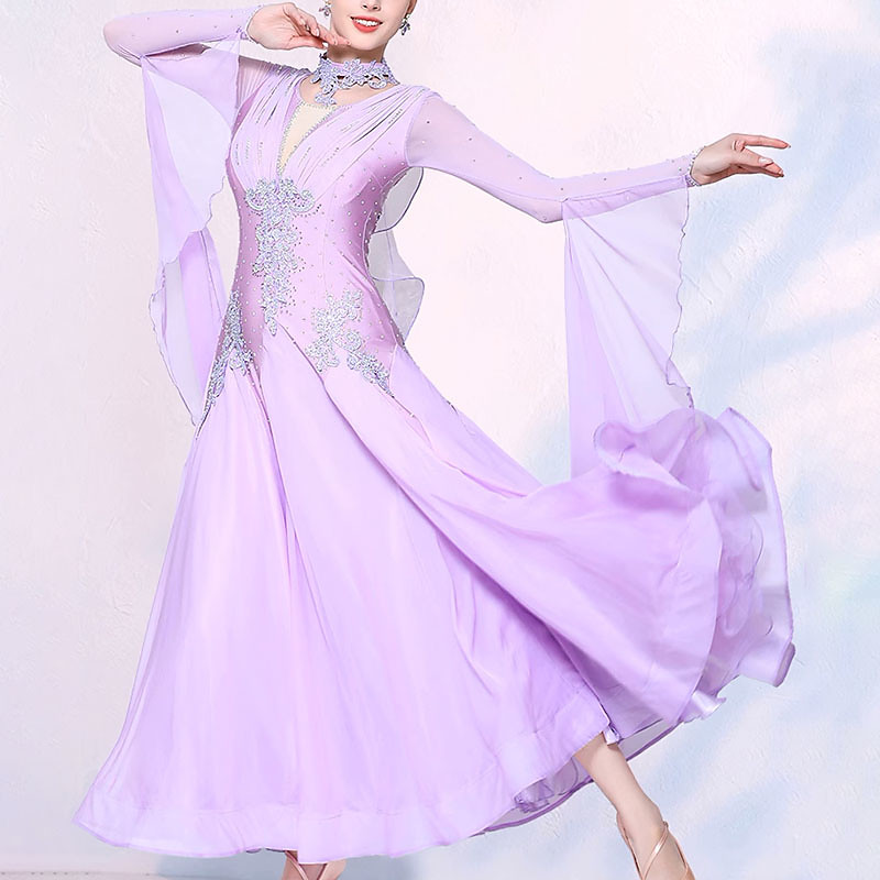 Ballroom Dance Dress Crystals / Rhinestones Women's Performance Party Long Sleeve Chiffon Spandex